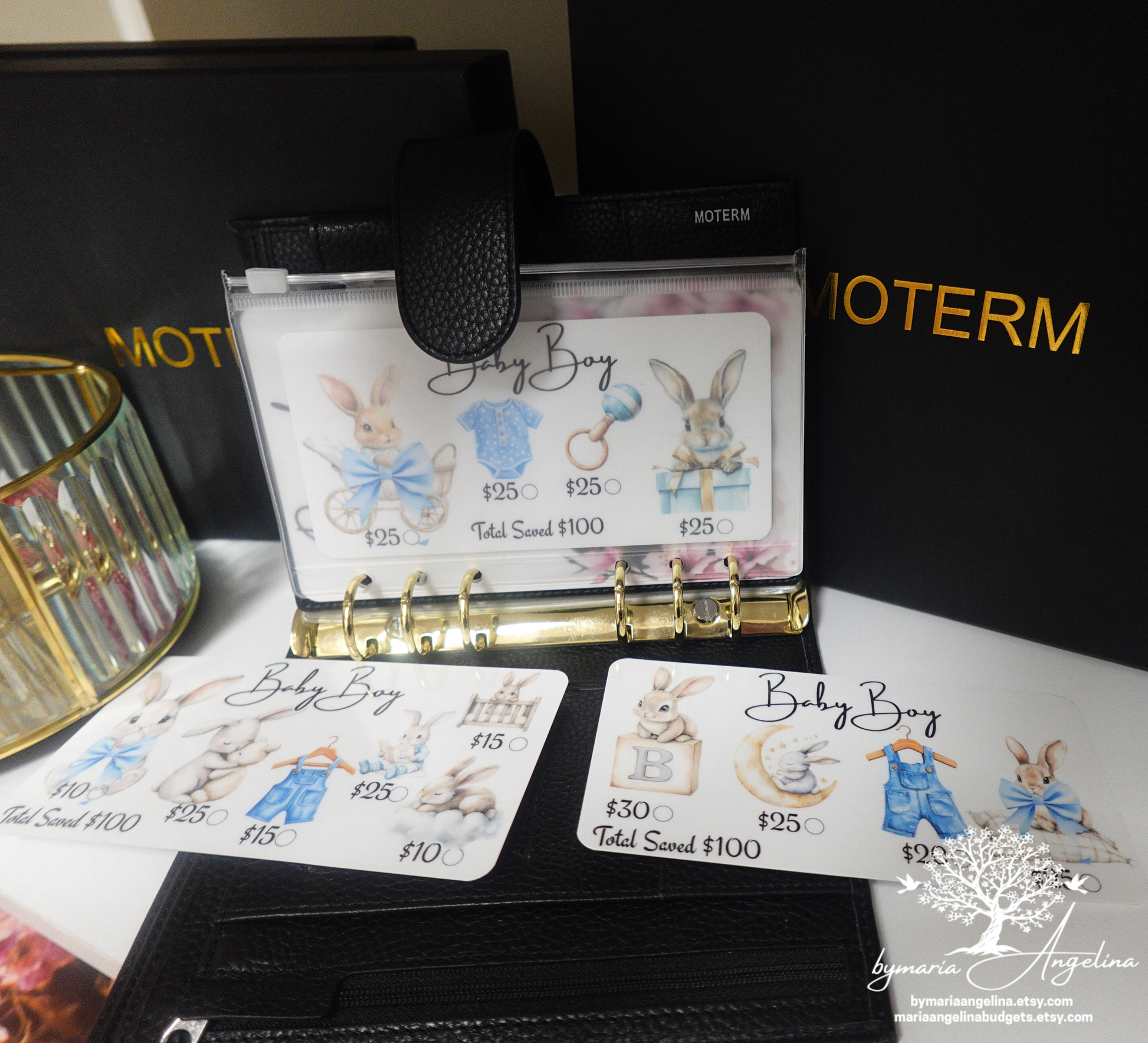 Baby Boy Bunny Collection Savings Challenges set of (3) saves a total of $300. Perfect for feature Nursery new mommy, baby shower, Fits A6 Binder and envelopes. Such a Fun way to save