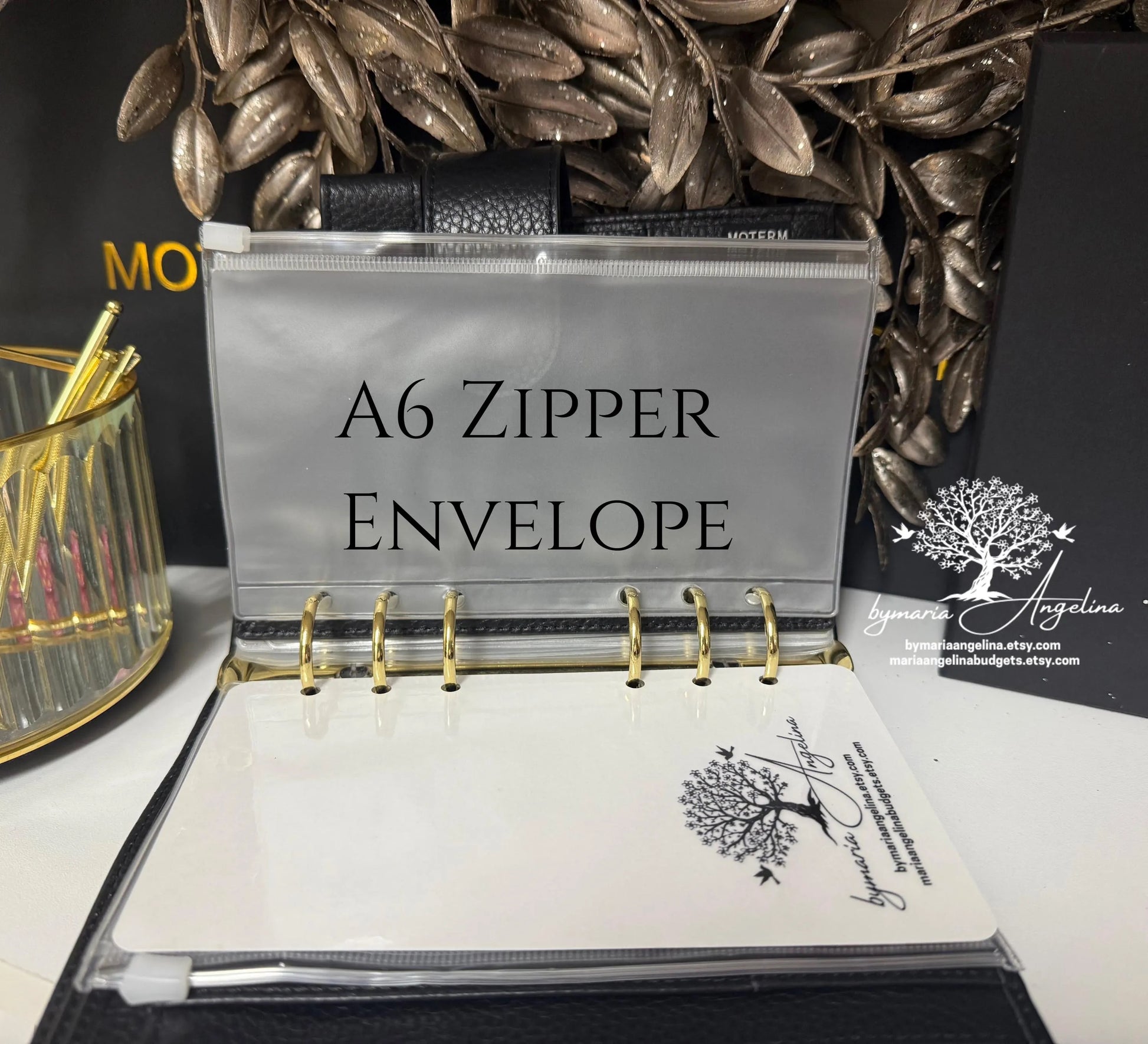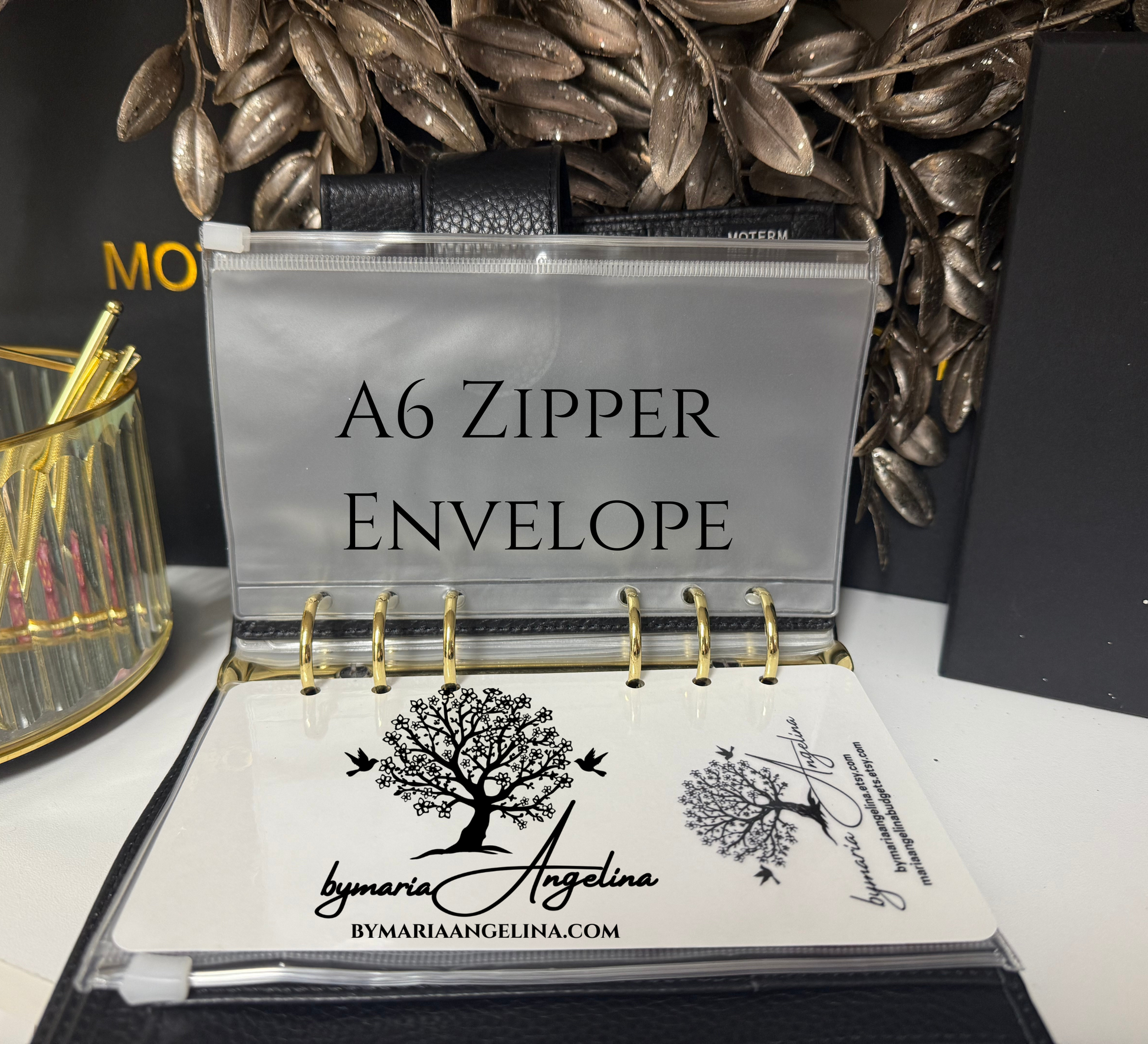 Laminated card 5 mil with clear laminate finish, which makes this challenge usable again and again. Measures approximately 3.2”x6.3”, I also the sell the A6 Cash Frosted Zipper Envelope