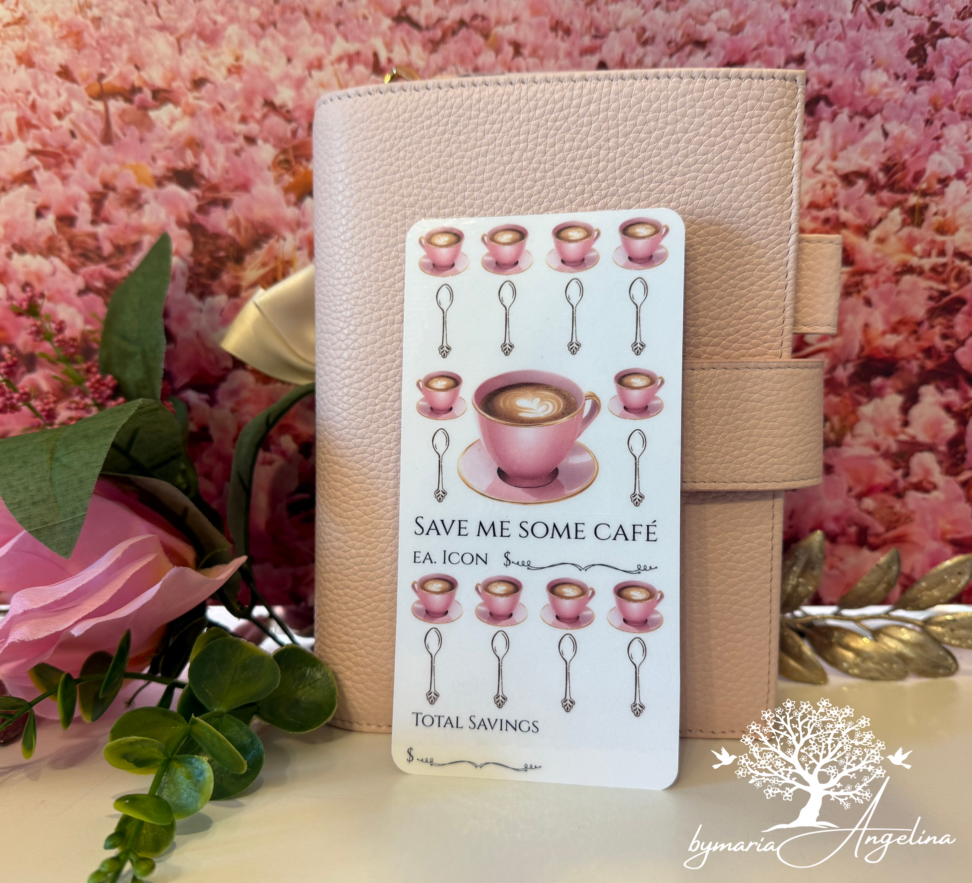Save me some Cafe Savings Challenge Saves any amount of choice | Laminated A6 Savings challenge | Cafe, Coffee Lovers Planner inserts | so much fun it makes more exciting to save, Laminated card stock 5 mil with clear laminate finish, which makes this challenge usable again and again. Measures approximately 6.3”x3.2”, You may also purchase the A6 Cash Frosted Zipper Envelope.