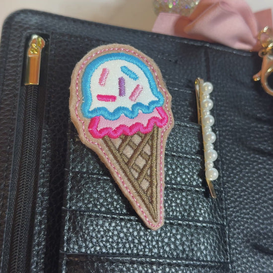 Add a scoop of cuteness to your planner! This super adorable ice cream cone magnet features soft felt details with glossy vinyl touches for extra charm and texture. Designed with a strong magnetic backing, it easily decorates planner binders, dashboards, wallets, or any magnetic surface. Perfect for ice-cream lovers and pastel stationery fans, this little treat adds a fun, playful pop to your planning routine ✨ Felt & vinyl mixed textures